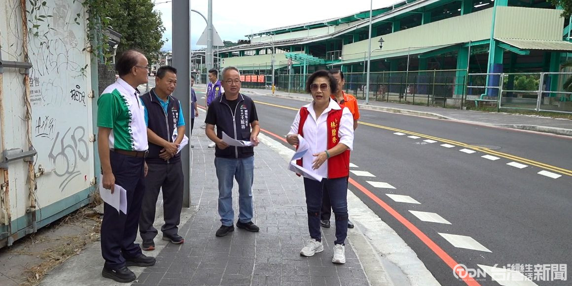 ▲在市議員林碧秀爭取下,市府拓寬了兩側的通學步道,也將附近道路燙平並重新整建標線和路燈/記者 賴秋峰攝