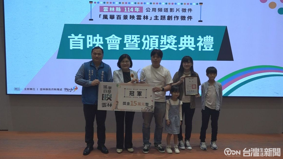 ▲雲林縣長張麗善為114年公用頻道影片徵件的冠軍得主《阿公的哺哺車》頒獎。記者 謝沂辰/攝