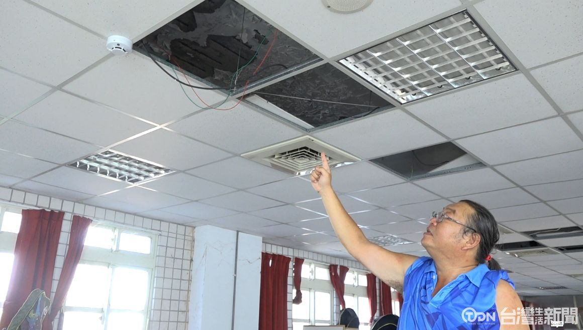 ▲大甲國小禮堂使用將近45年,現況老舊,屋頂只要下雨就會漏水/記者 陳柏翰攝