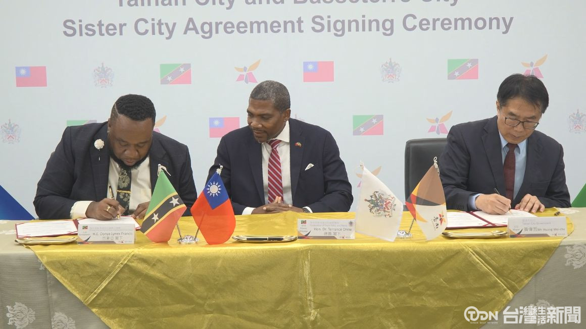 邦交國聖克里斯多福及尼維斯總理拜會與簽署姊妹市,友邦聖克里斯多福及尼維斯總理德魯來訪,見證首都巴士底市與臺南市締結姊妹市。