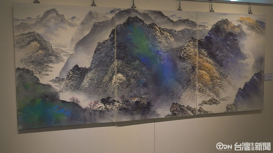▲藝術家黃乾成長期推動美感教育,並研究水墨畫將近50年,他也非常喜歡創作台灣山巒美景,在本次展覽中也展出他所畫的玉山四季。/記者 陳佳昇 攝。