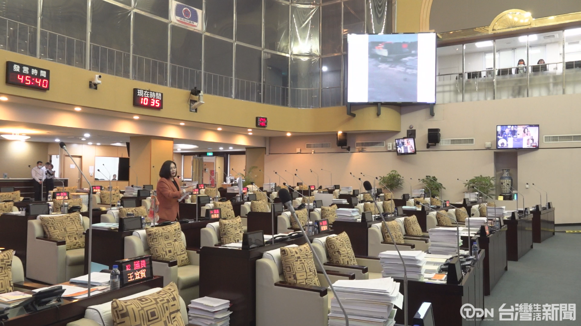 市議員林燕祝在總質詢拿出助理所拍的影片,清楚看到豬舍裡面有熟廚餘,周邊的環境相當髒亂,豬舍附近都堆放非法棄置的營建混合物和瀝青,根據議員資料,臺南有541家養豬場,但沒牧場登記和飼養登記竟然有70家,她就質疑市府,到底臺南有多少廚餘養豬的黑數。