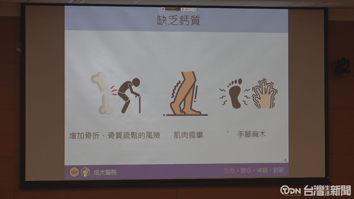 成大醫院營養部營養師黃薇表示,如果長期鈣質攝取不足,會造成多方面健康影響,對於生長中青少年,可能無法達到巔峰骨量,提高未來骨骼疾病風險,中高齡者則容易因骨質流失,增加骨質疏鬆與骨折的風險。