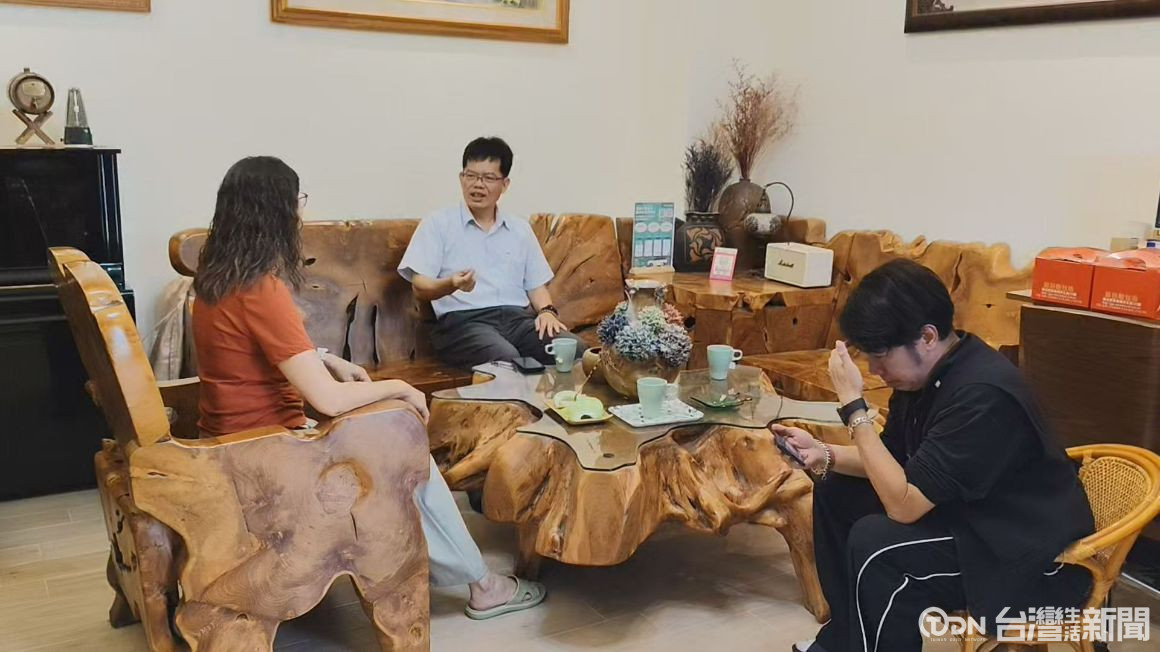▲濁水溪社區大學集集分校校長陳璿文特地來到學員蔡素緞家中恭喜拜訪/記者金芸亘攝