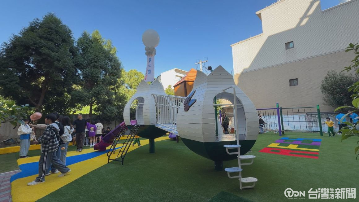 ▲今年校慶最大亮點之一,就是全新完工的學生遊戲器材區正式啟用/記者 楊宗桓攝