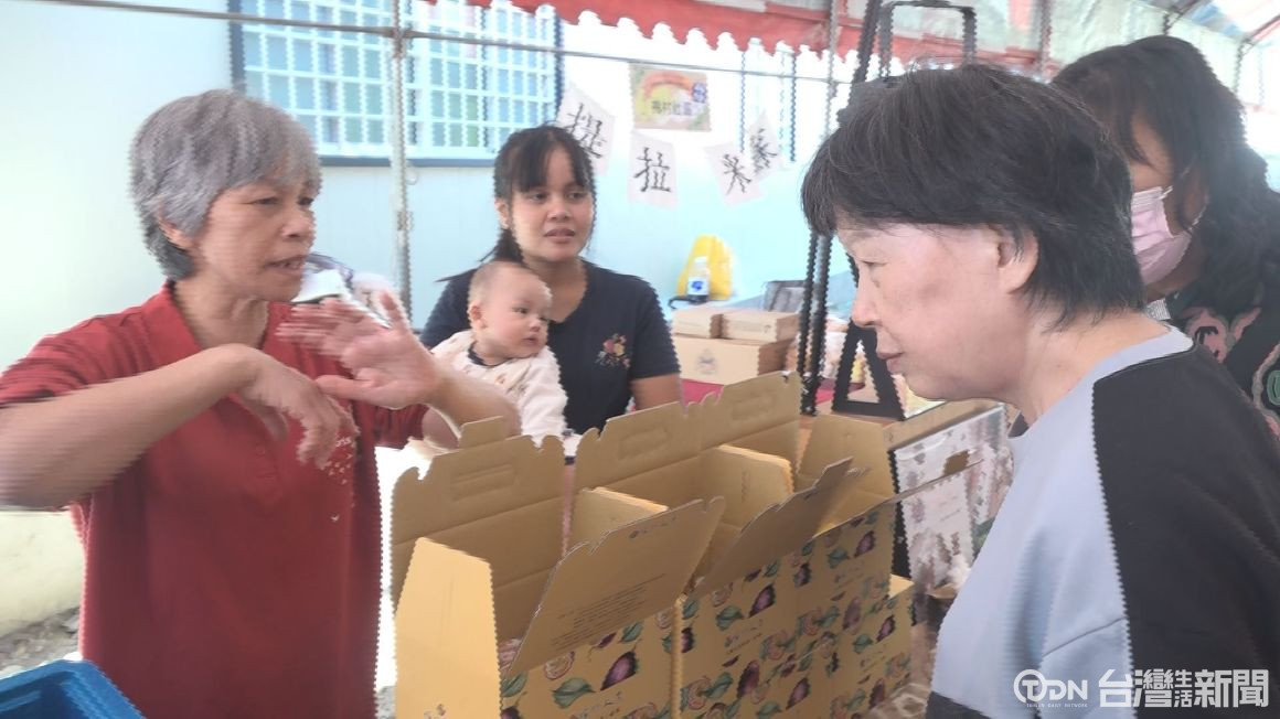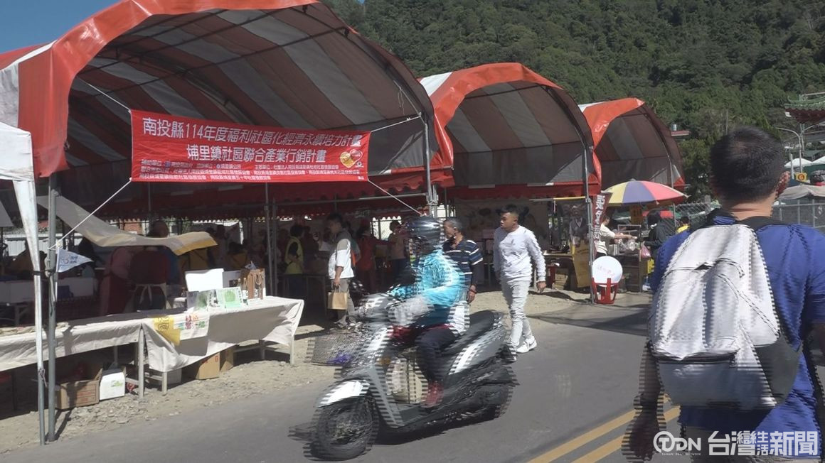 ▲趁著地母廟舉辦地母聖誕祝壽活動,埔里鎮社區產業,於地母廟旁舉辦聯合展售會。/記者 王昭聖 攝