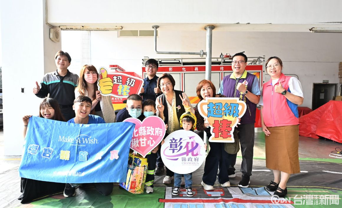 彰化縣政府與Make-A-Wish Taiwan喜願協會,於鹿鳴消防分隊合作辦理圓夢活動,為4歲的白血病病童榤寶實現「搭乘各式車輛」的願望。榤寶自今年3月確診白血病以來,勇敢面對多次治療,縣長王惠美也親自出席,為孩子加油打氣。