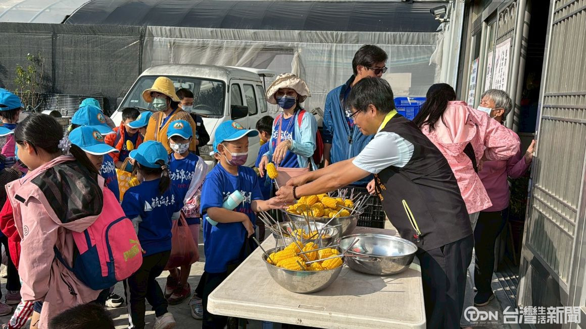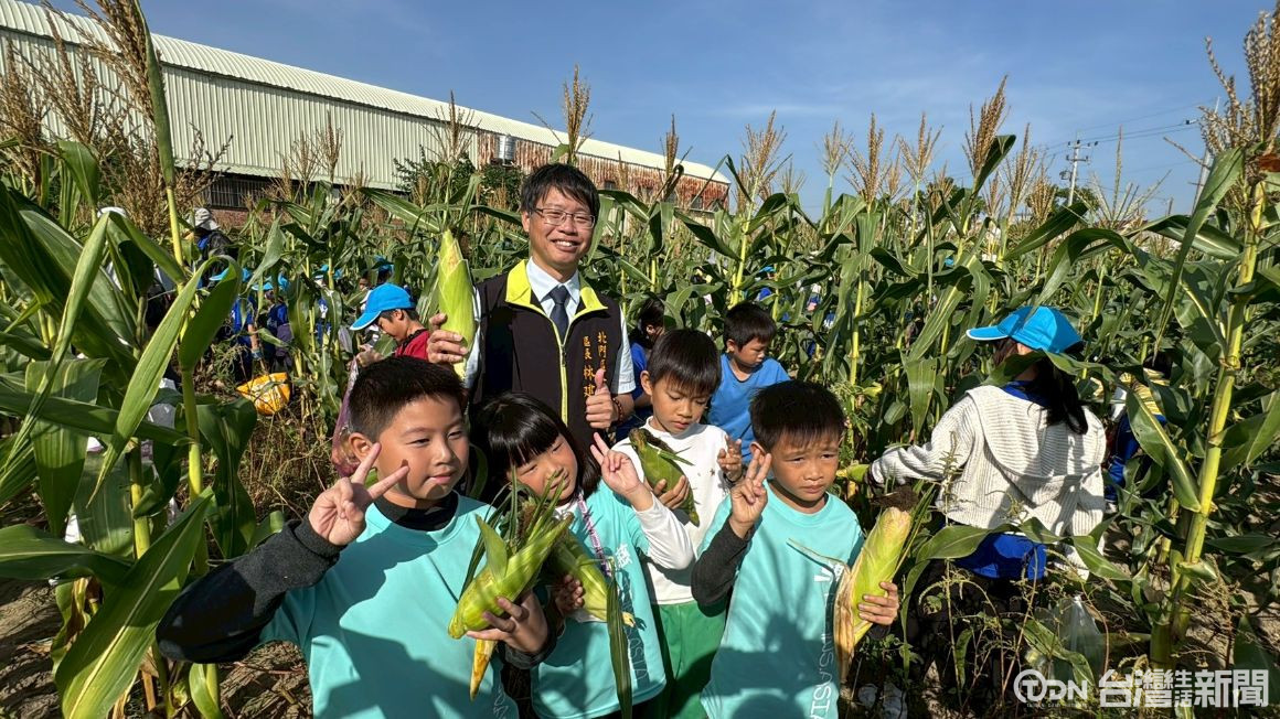 ▲臺南學甲的一處農場,提供大北門區學校推動食農教育,邀請北門區內五間國小的師生一起走入玉米田。/圖 北門區公所提供