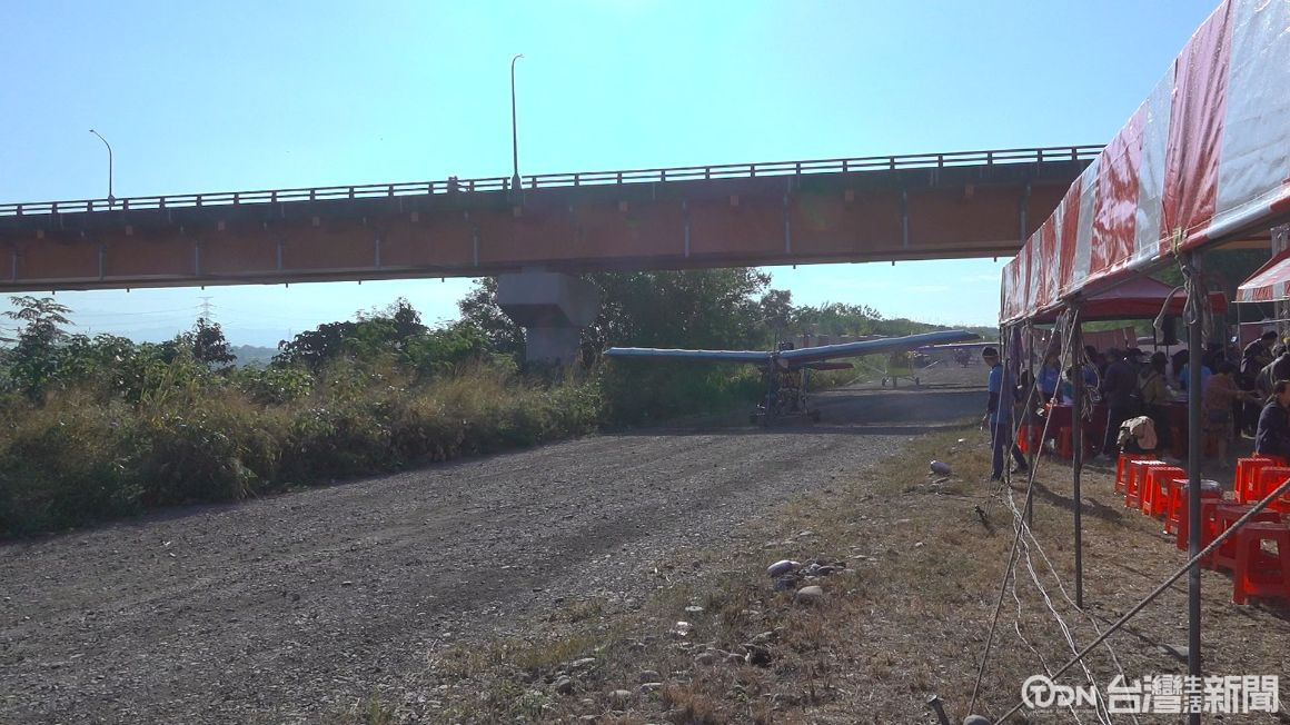 ▲動力飛行傘等接力滑過飛機跑道進場/記者 賴秋峰攝