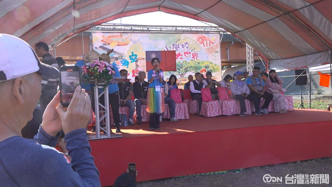 烏日區溪尾國小這天舉辦71周年校慶,這次很特別的是,跟鄰近的休閒航空俱樂部合作,直接將校慶在飛機跑道上舉行,除了動態的教學成果表演,現場還有輕航機,動力飛行傘,及救生艇展示等等活動,吸引民眾爭相合照,場面相當熱鬧。