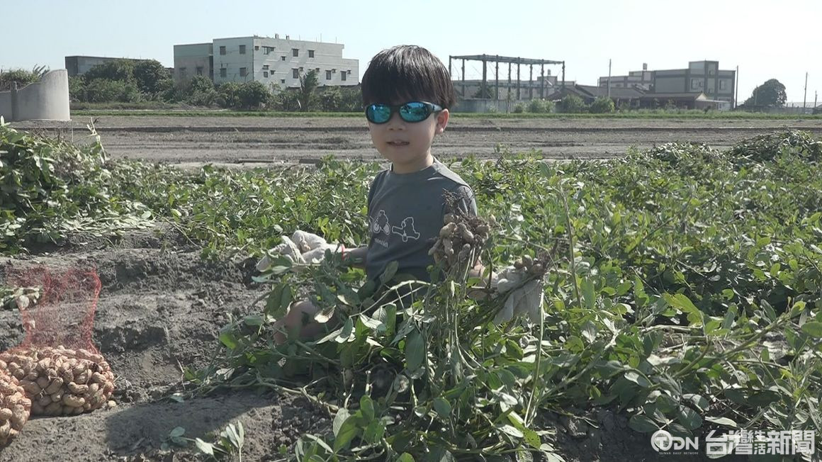 ▲貓兒干採收季於日前展開,許多家長帶著小朋友參與體驗採收花生的樂趣。記者 謝沂辰/攝