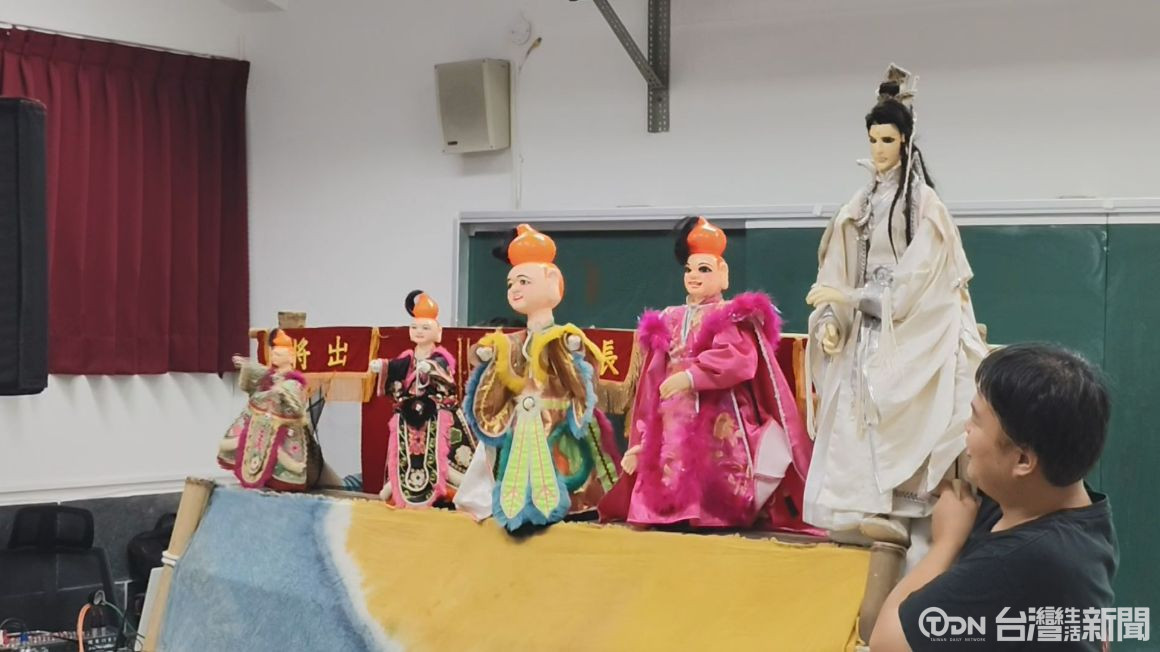 ▲長義閣掌中劇團帶大家了解台灣布袋戲偶的演變/記者金芸亘攝