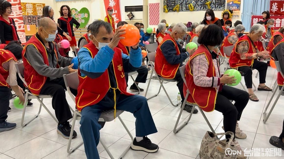 ▲長輩跟隨日照中心的老師一起執行健康操。/ 記者 林詩涵攝