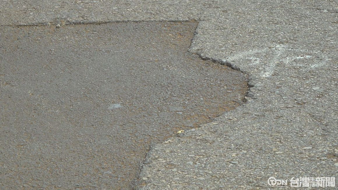 ▲大型車輛、貨車等常常進出通行,導致路面出現龜裂、破損/記者 陳昭安攝