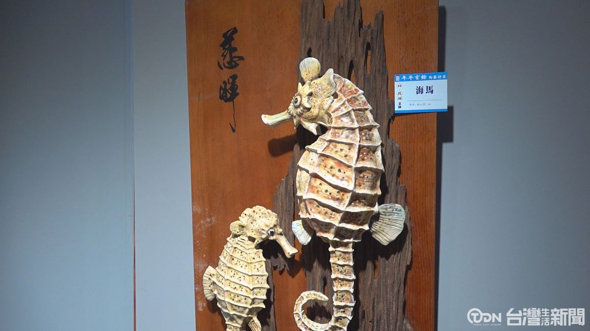 ▲林昆輝也提到,製作難度最高的作品就是海馬,他說型態、色彩、釉燒比例等都要精準到位,才能將作品活靈活現。/記者 陳佳昇 攝。