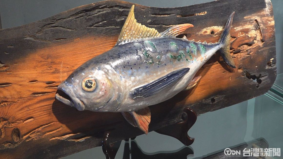 ▲藝術家林昆輝本身具有深厚的書法及美術基礎,也是陶藝跟收藏雅石的專家,他也有感海洋遭嚴重破壞,致力製作海洋生物相關的陶藝作品,也希望能喚醒民眾重視環保議題。/記者 陳佳昇 攝。