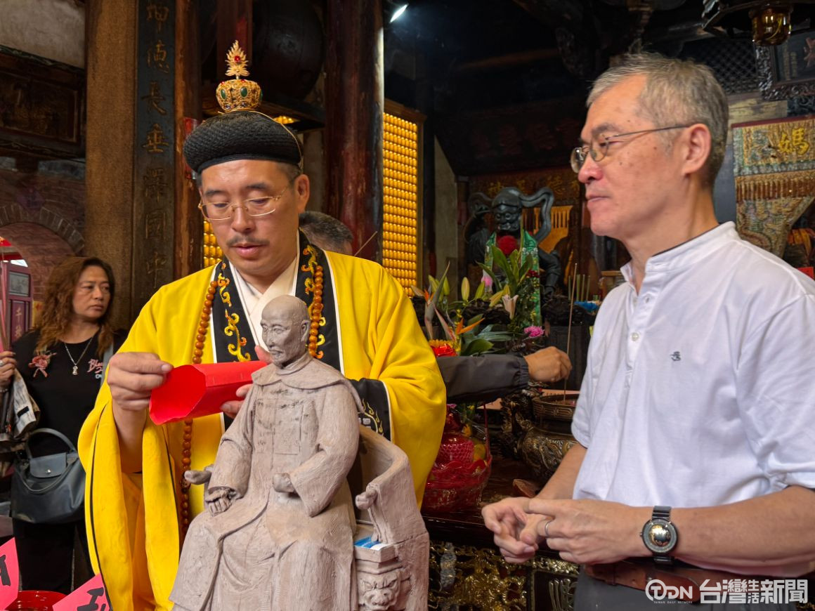 ▲泥塑的王得祿神像身著朝服,莊重威嚴/記者黃培怡 攝。