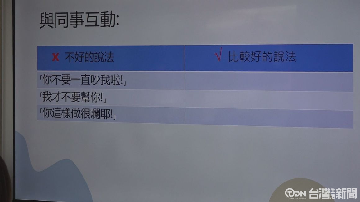 老師帶著學員們學習與人相處的各種細節。台灣生涯重建輔導專業協會這天辦理身障朋友的職涯穩定課程,希望能夠幫助他們在職場上穩定發展。協會表示,與主管、同事的友善互動是課程重點,有些身障者常常因為不善表達導致與他人發生衝突,進而無法在職場上長久發展。參與學員表示,這天的課程讓她學到許多,也希望大家能夠多多關注身障者的就業需求,不要因為身障身分就差別對待。