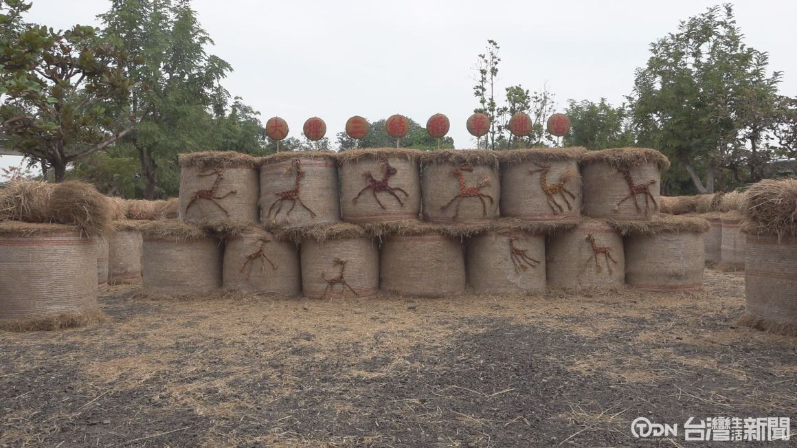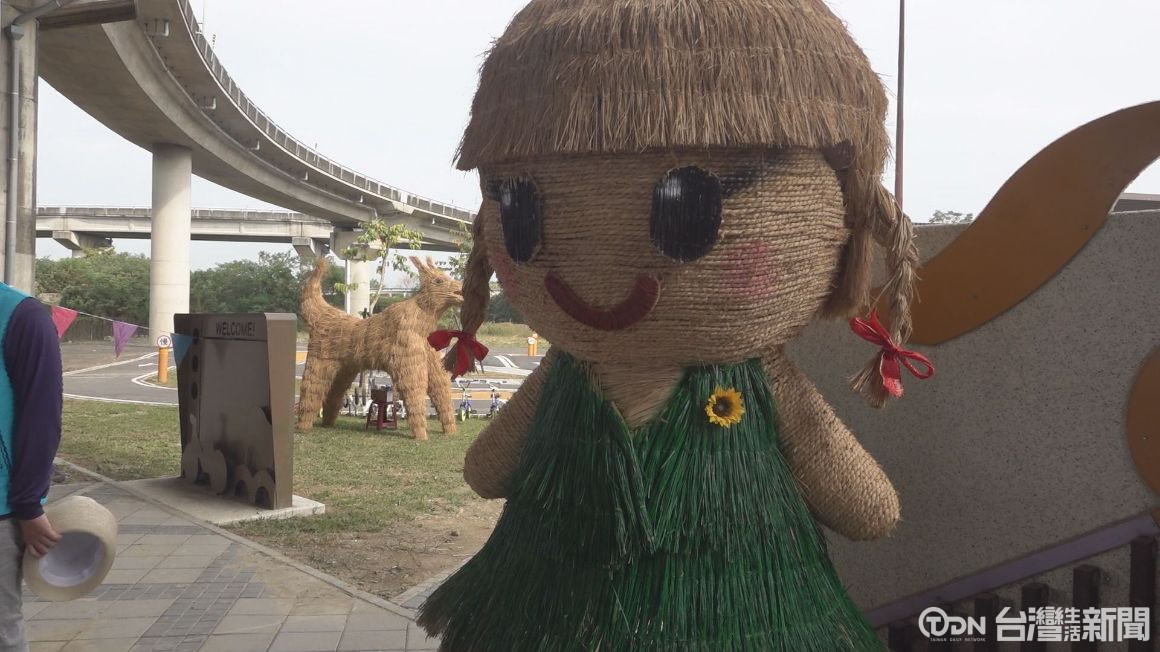 ▲三結社區為本次活動投入人員手工編製的大型稻草裝置藝術 / 記者 王可萱 攝