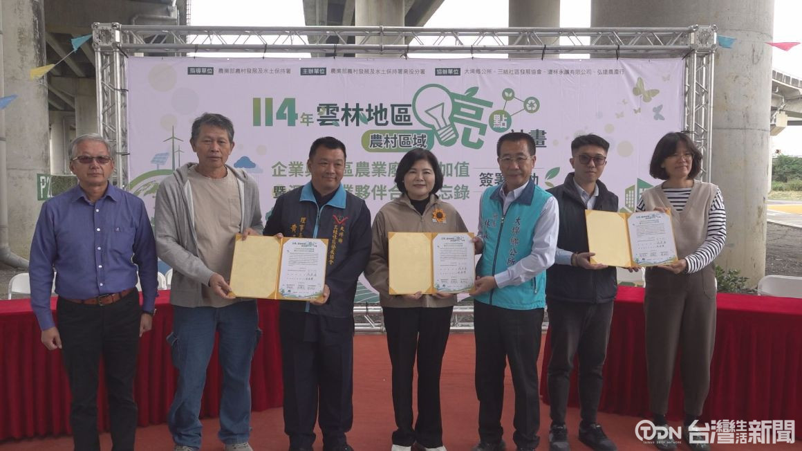 ▲會上大埤鄉公所、雲林縣政府跟三結社區跟專門推動農業循環經濟的企業簽署MOU,未來將在地方發展稻草、菇類栽培、食堂廚餘跟蚯蚓相關的蚓糞循環場,將稻草酸菜季活動的農村永續精神再拓展 / 記者 王可萱 攝