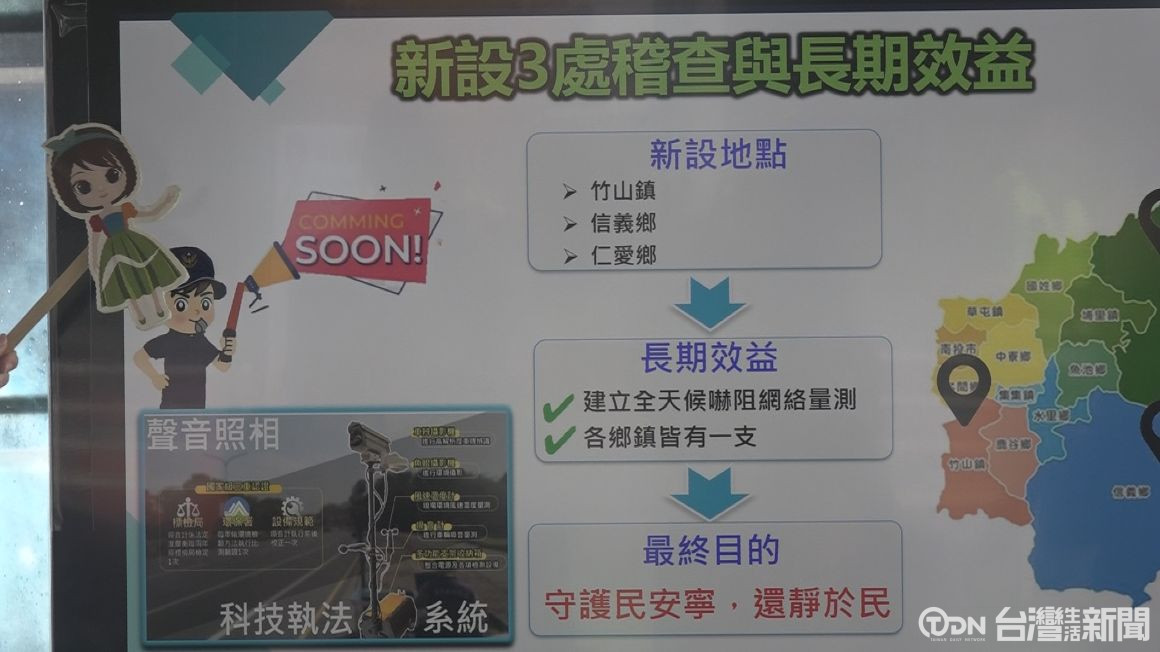 ▲圖為南投縣政府透過設置固定式聲音照相設備,有效來改善噪音車輛問題/記者林妤昕攝
