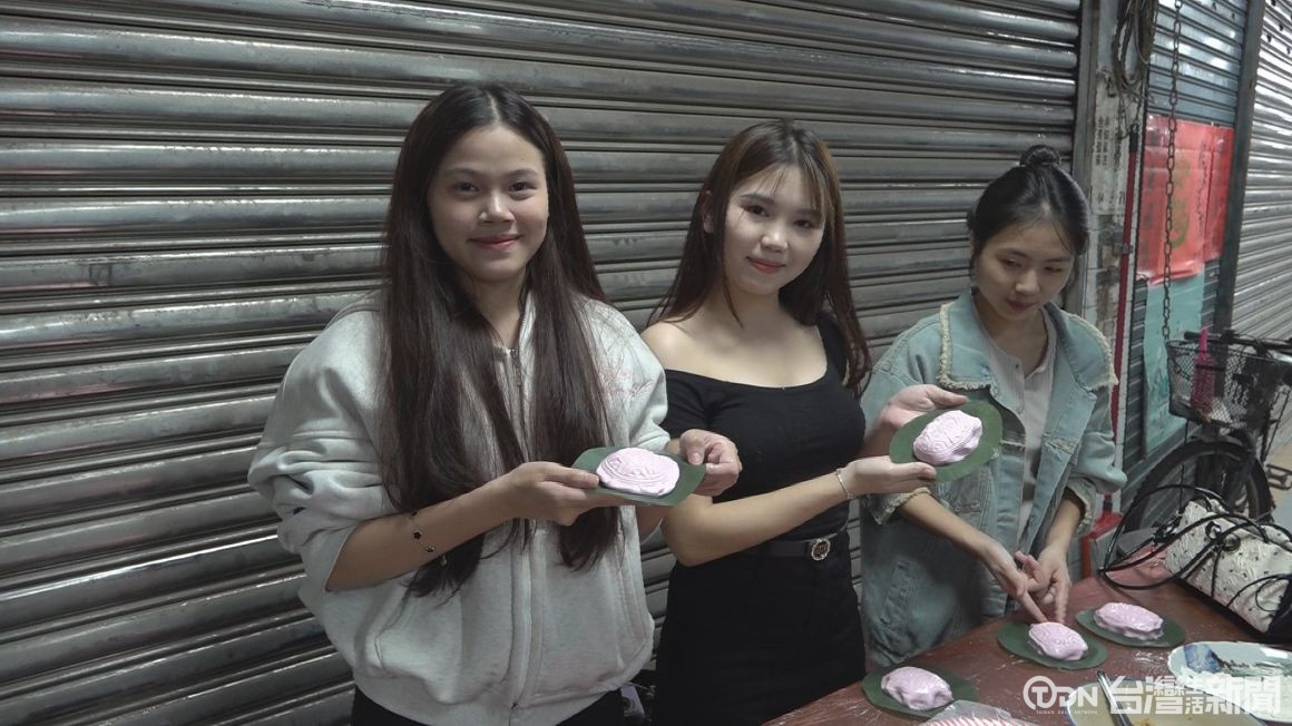 ▲南開科大國際生體驗坐台灣傳統美食紅龜粿,大家都玩得不亦樂乎/記者 廖韋凌攝