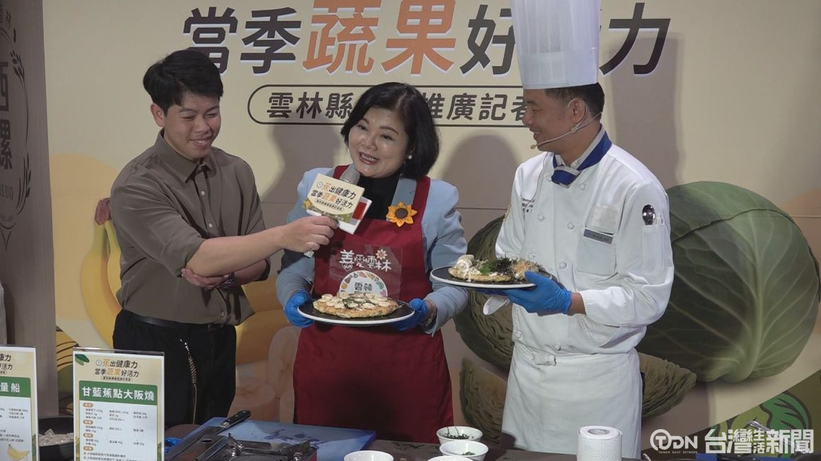 ▲雲林縣政府29日下午於國道1號西螺服務區南站辦理香蕉高麗菜推廣記者會,邀請知名廚師示範多道香蕉與高麗菜創意料理,展現當令食材入菜的多元應用。記者林虹伯/攝