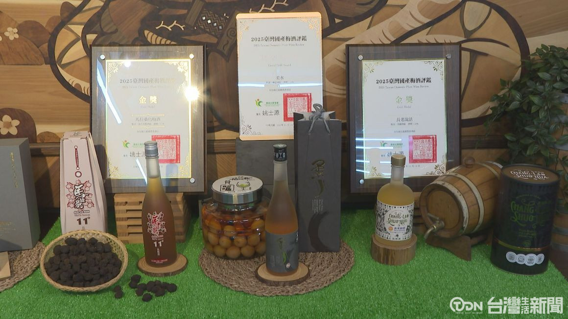 ▲信義鄉農會酒莊三樣產品分別得到2025台灣國產梅酒評鑑競賽1項特級金獎和2項金獎//記者金芸亘攝