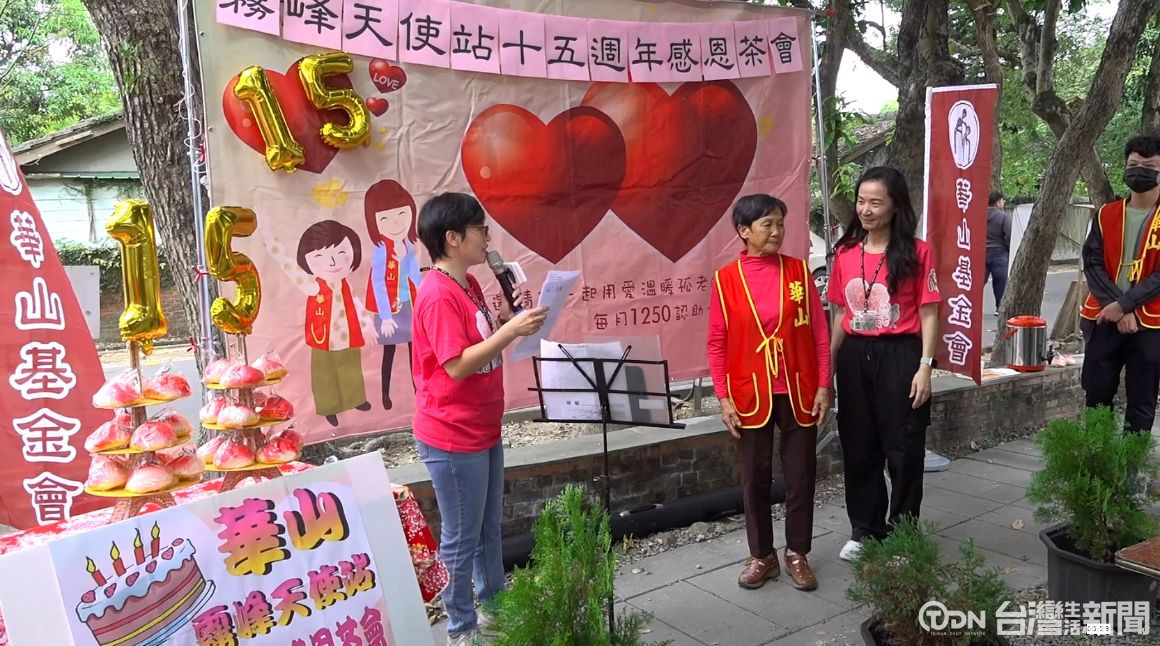 服務獨居長輩,華山基金會在霧峰成立愛心天使站,15年來服務超過百位失能、失智、失依長輩,歡慶15歲生日,天使站這天規劃感恩茶會,邀請長輩們走出家園,到光復新村走走,不只有百歲人瑞的慶生會,不少長輩們還獻唱準備已久的歌曲,謝謝天使站的陪伴,場面相當溫馨。