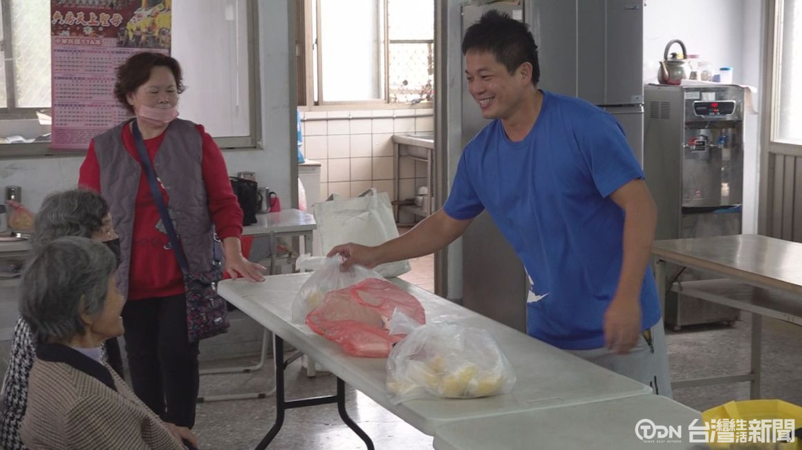 ▲青農林昆溥親自到大坑社區分送南瓜饅頭,替長輩加一份暖意/記者 蔡育楷 攝