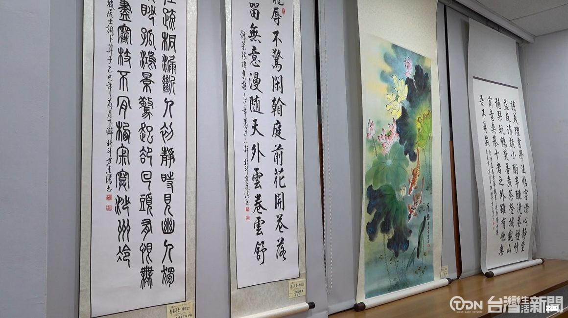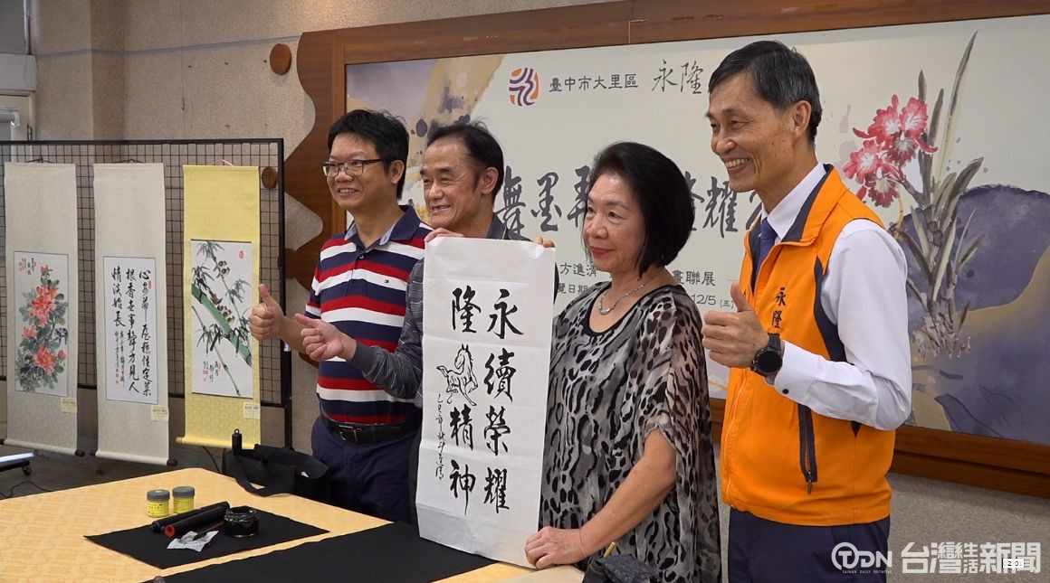 ▲大里區永隆國小邀請熱愛藝術的夫妻檔—書法家方進清與畫家黃麗月,聯手舉辦書畫聯展/記者 賴秋峰攝