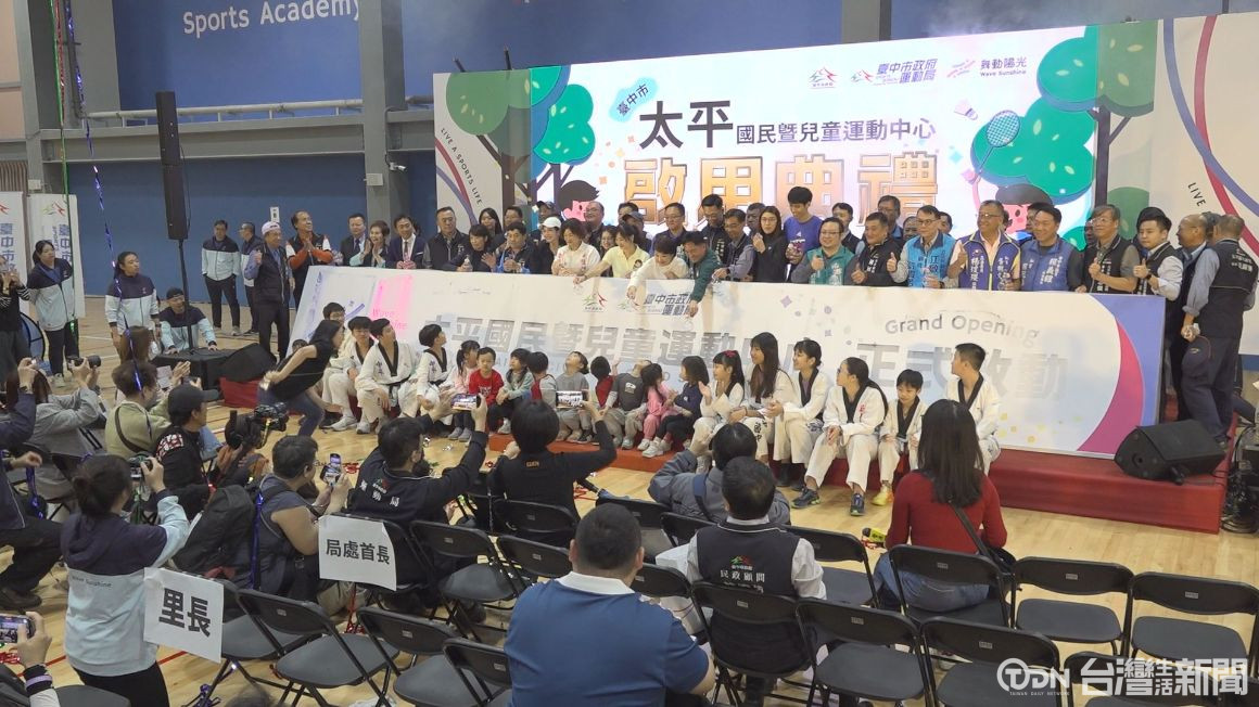 眾人見證下,長官貴賓啟動開幕儀式,歷經3年時間,投入6.1億經費全額興建的太平國民暨兒童運動中心這天正式啟用,這也是台中市長盧秀燕給人口突破20萬人的太平區的一份大禮。