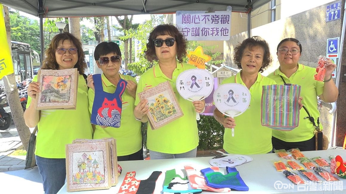 ▲南門社區發展協會秀出布包和手提袋,充滿巧思與創意/記者 張瑋玲攝