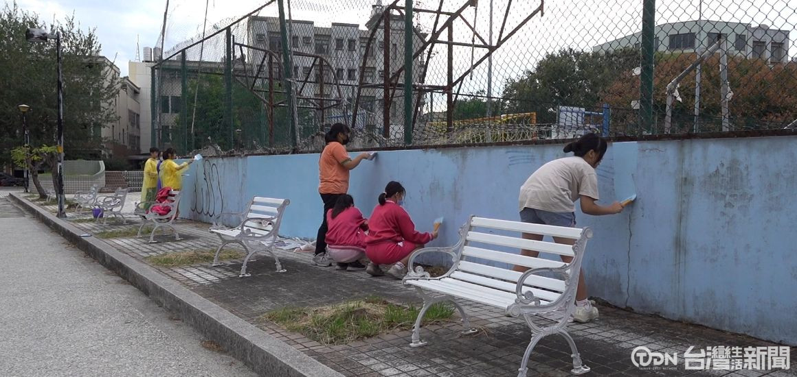師生們身體力行,利用社團活動時間,將正對校門口的公園圍牆恢復往日乾淨,也讓社區與校園共好。