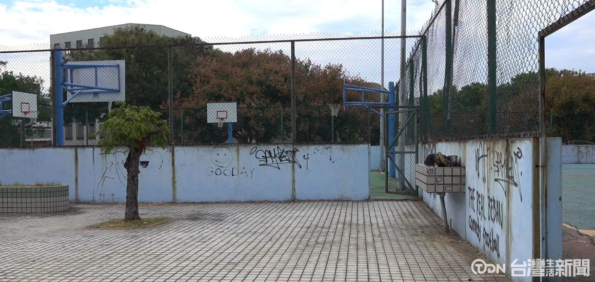 ▲三角運動公園是屬於大里工業區管轄,原先環境有些髒亂,圍牆也布滿雜亂的塗鴉/記者 賴秋峰攝