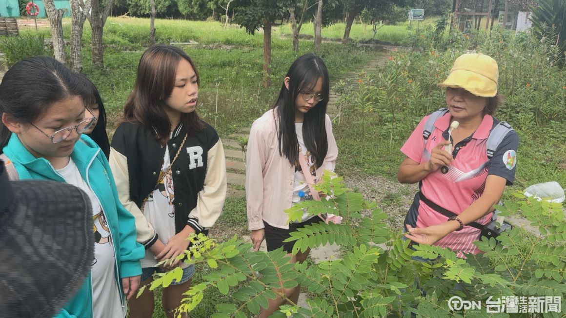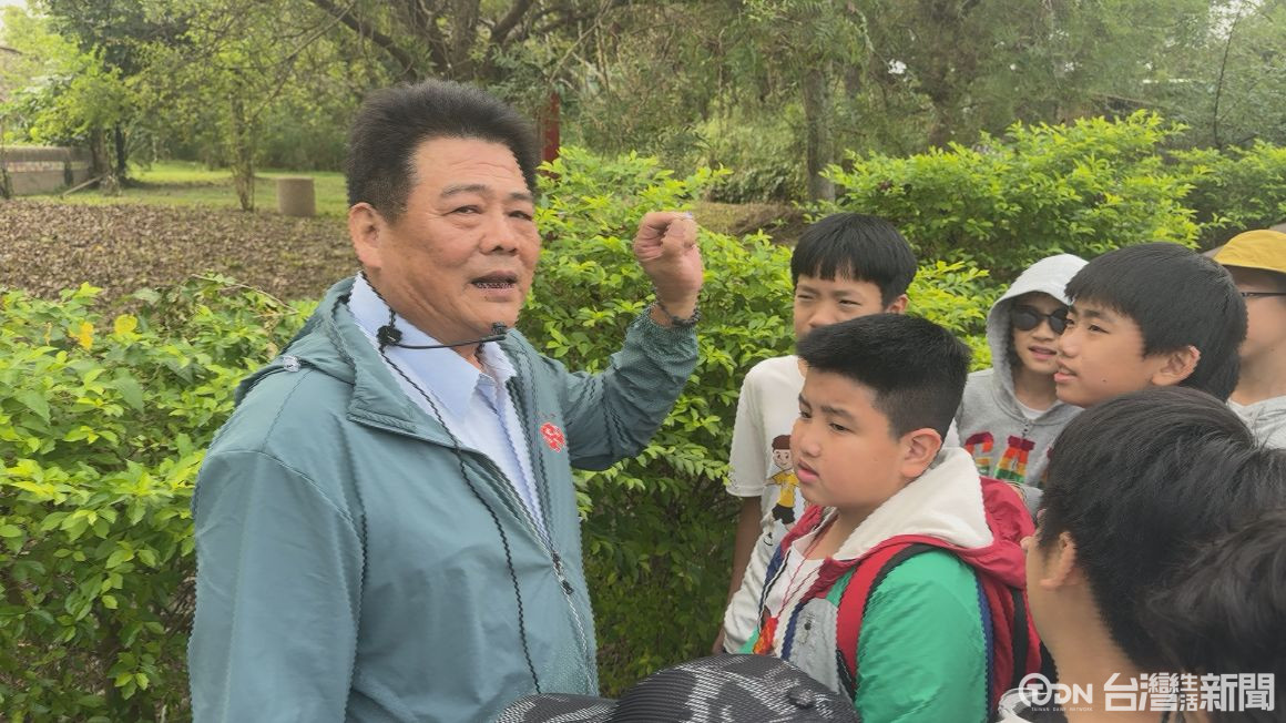 ▲導覽老師向學生介紹園區裡面的生態環境。/記者 周有勝 攝