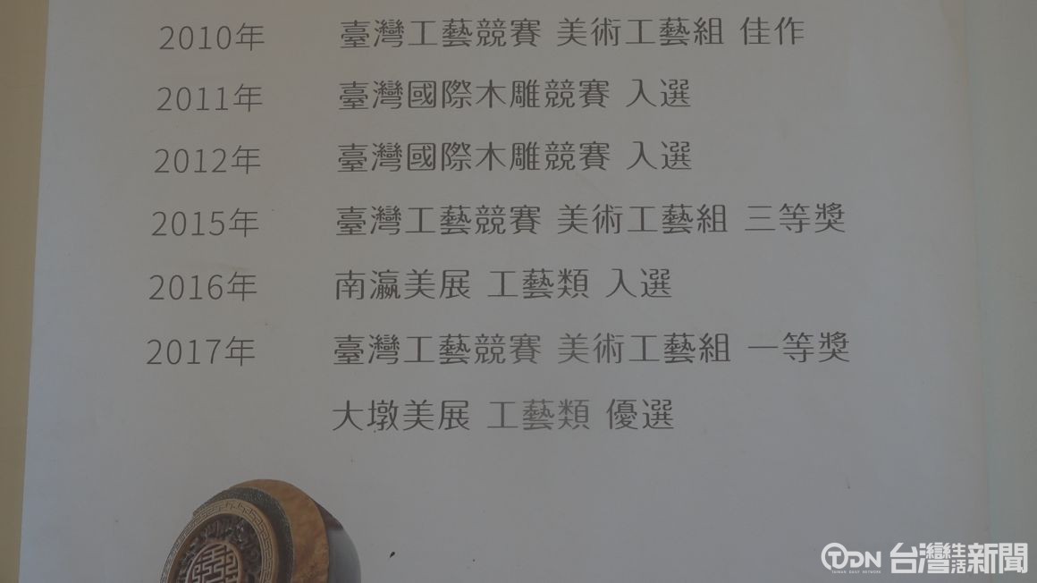 ▲在2017年江松智得到台灣工藝競賽的一等獎,可以說是非常厲害。/記者 周有勝 攝