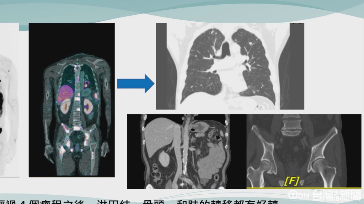 透過PSMA正子造影,清楚可看到,癌細胞擴散範圍極廣,有如滿天星,這名6旬老翁,因為腰椎、骨盆腔刺痛,發現罹患「轉移性攝護腺癌」,癌細胞轉移到淋巴結、骨頭,所幸透過精準放射標靶治療,挽回生機完成出國夢想。
