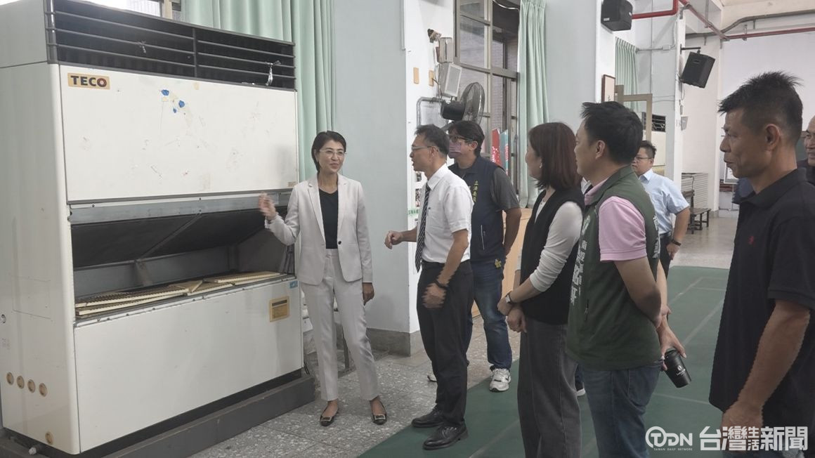 ▲圖為南投縣長許淑華等人前來敦和國小,勘查活動中心的冷氣設備/記者林妤昕攝