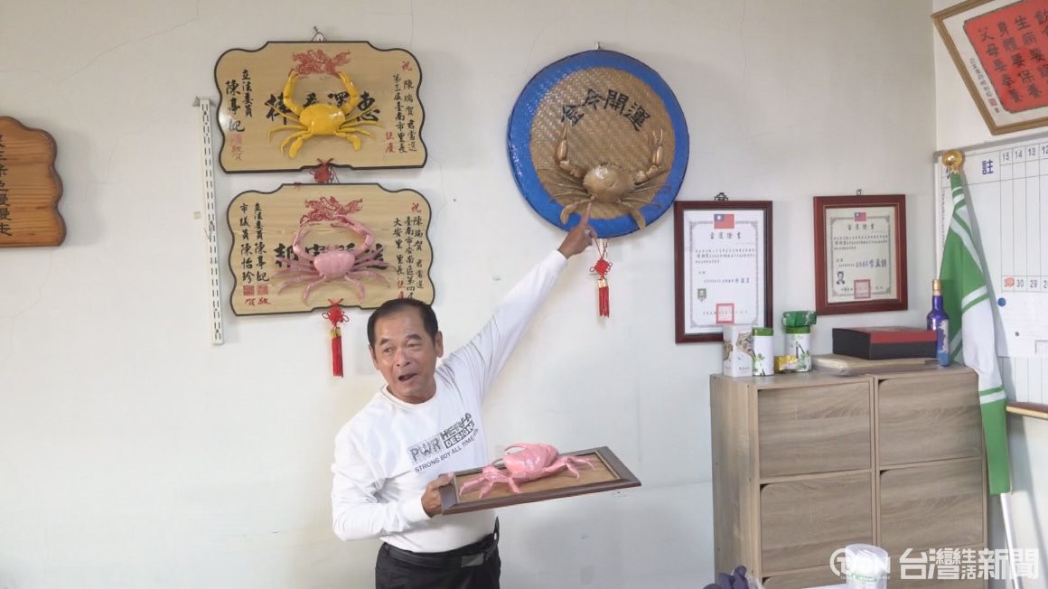 ▲大安里里長陳瑞賀意外研究出製作螃蟹標本的好手藝。/記者 蘇英豪攝