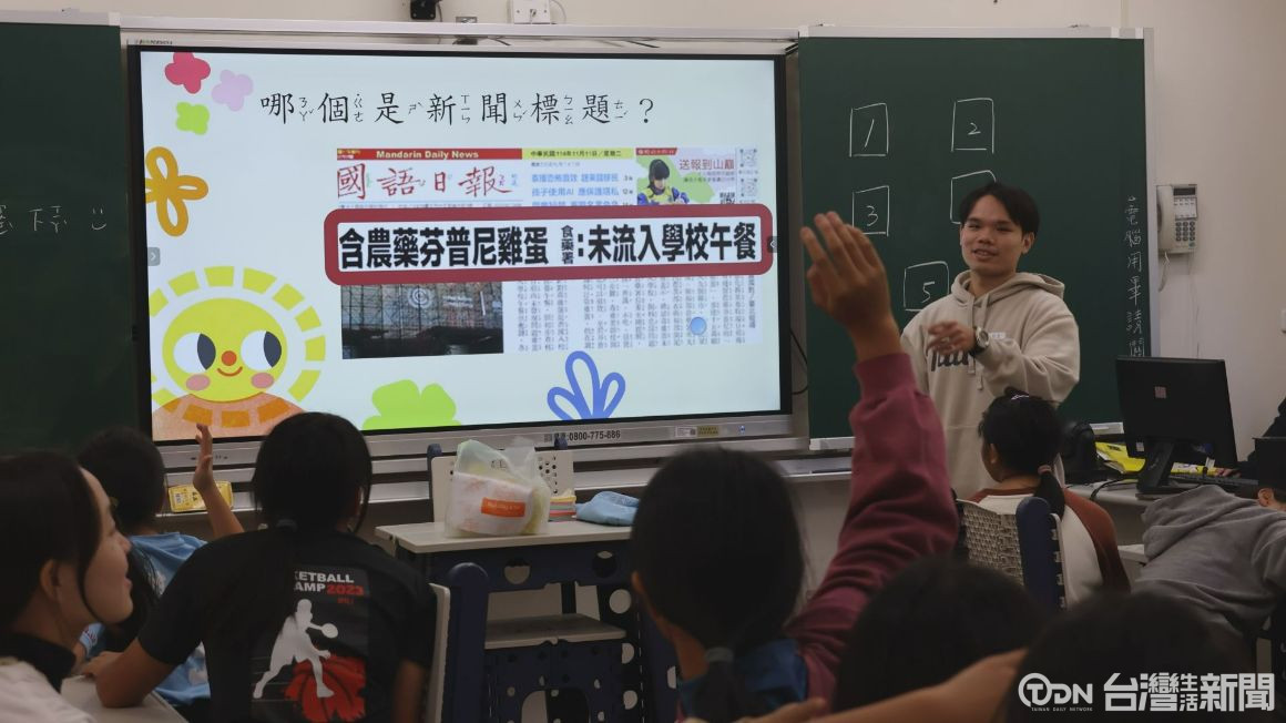▲台大的東谷沙飛學生社團設計媒體識讀的互動課程來陪伴信義鄉雙龍國小學童/記者金芸亘攝
