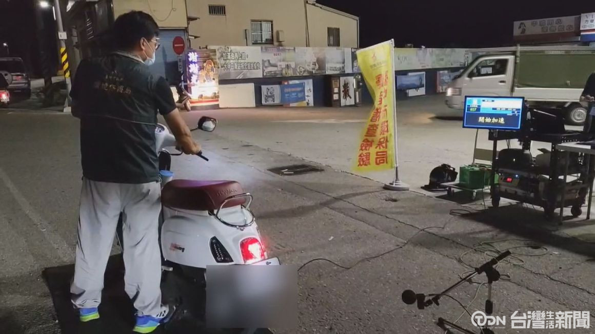 ▲執法人員仔細檢查機車排氣管的規範,希望改善噪音污染的問題/記者 楊宗桓攝