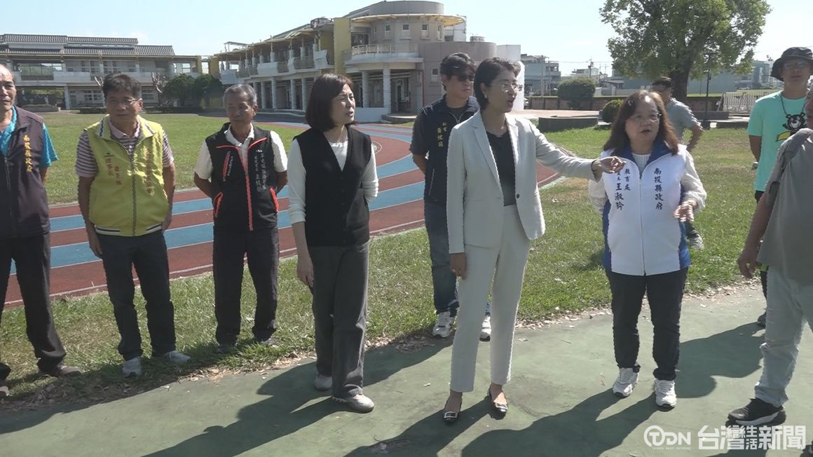 ▲圖為南投縣長許淑華前往草屯北投國小,進行校園球場整建需求會勘/記者林妤昕攝
