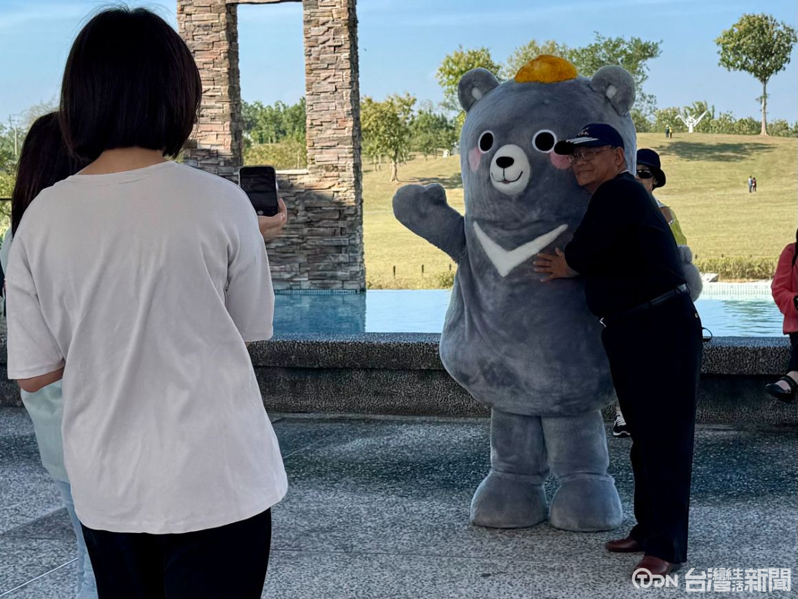 ▲灰熊熊外型可愛吸睛,遊客搶著合影。/ 記者 林詩涵攝