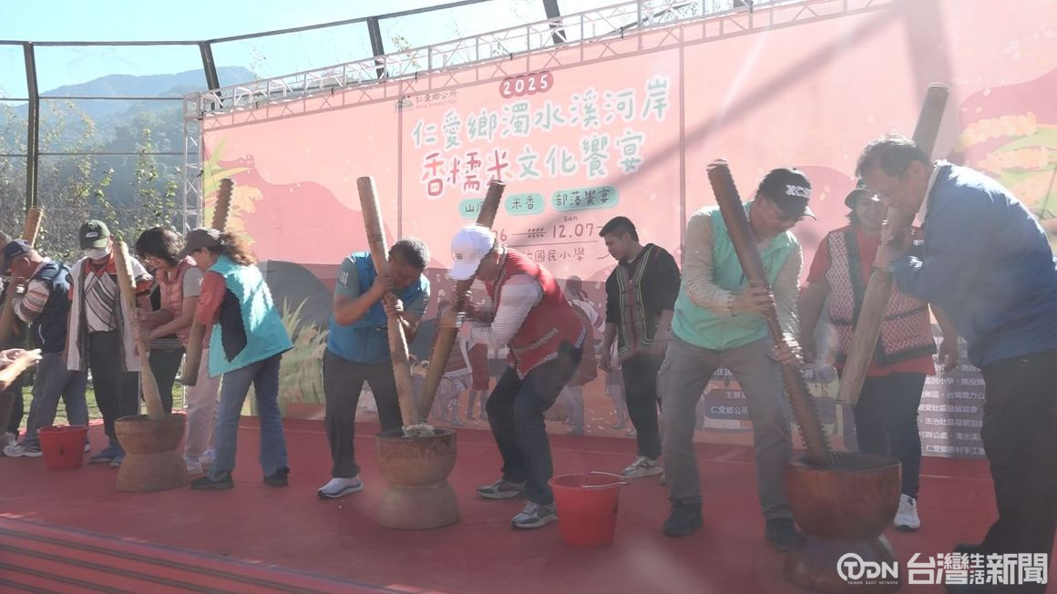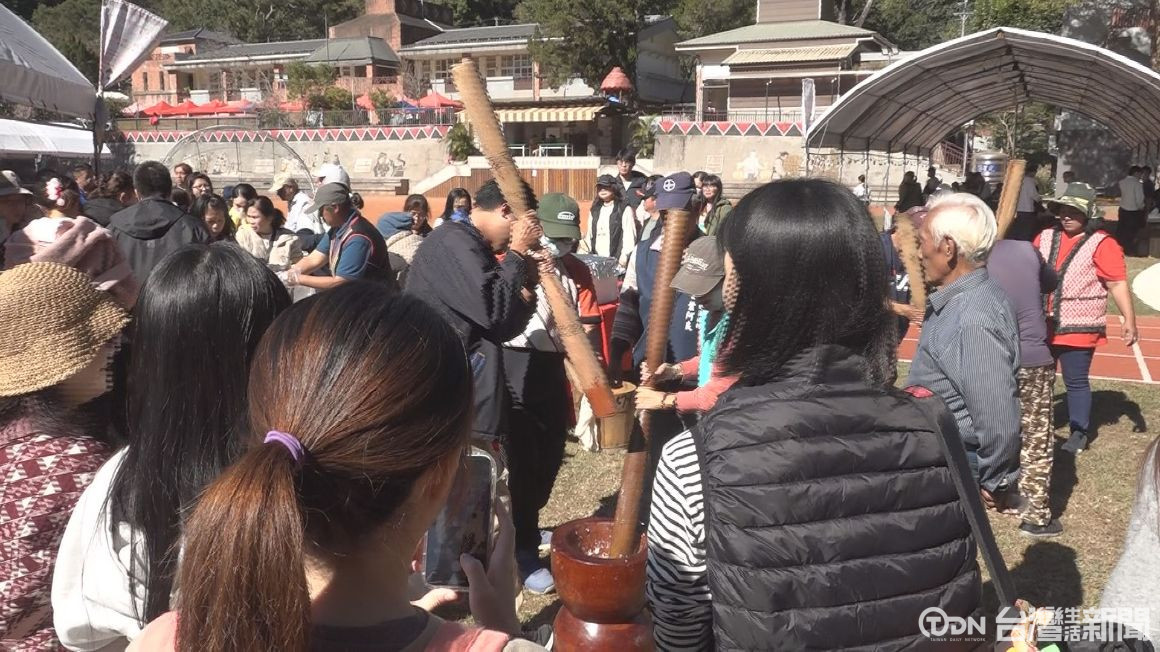 ▲原住民傳統搗米,麻糬製作,遊客也來體驗。/記者 王昭聖 攝