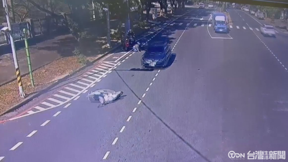 ▲短短幾百公尺,71歲老翁又在消防局前撞到路人造成騎士腦部重創,被路過員警攔車報警/記者 廖韋凌攝