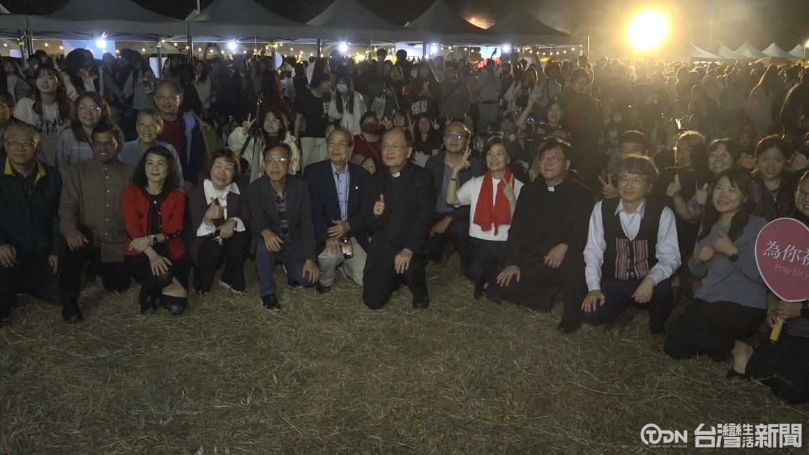 ▲靜宜大學今年攜手全台 46 所天主教學校,同步舉行聖誕點燈,吸引上千名師生與社區民眾一起參與/記者 陳柏翰攝