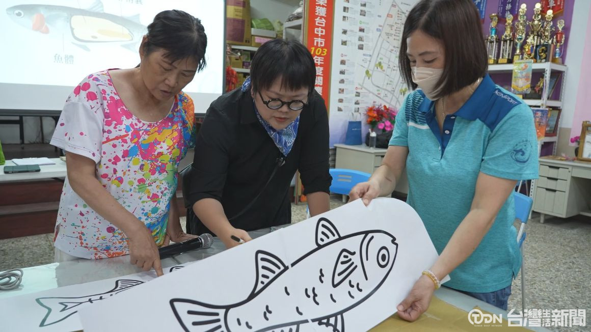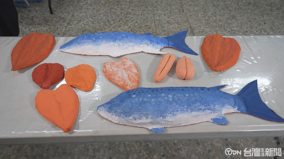 ▲海口腔文化協會協助下寮社區,以紙漿模型的方式,帶領社區居民製作一系列「烏魚教具」/記者 陳柏翰攝
