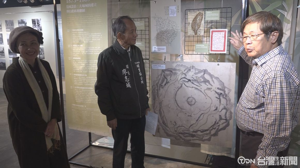 ▲文史工作者鄧向揚(右)向埔里鎮長廖志城(中)南投縣議員陳宜君,解說兵備圖的意義與來由。/記者 王昭聖 攝