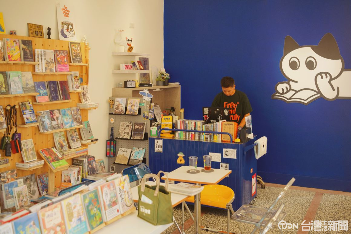 ▲書店外觀吸睛,內部也有展示金漫獎獲獎作品,也有機會見到可愛的貓咪店長。/ 記者 林詩涵攝